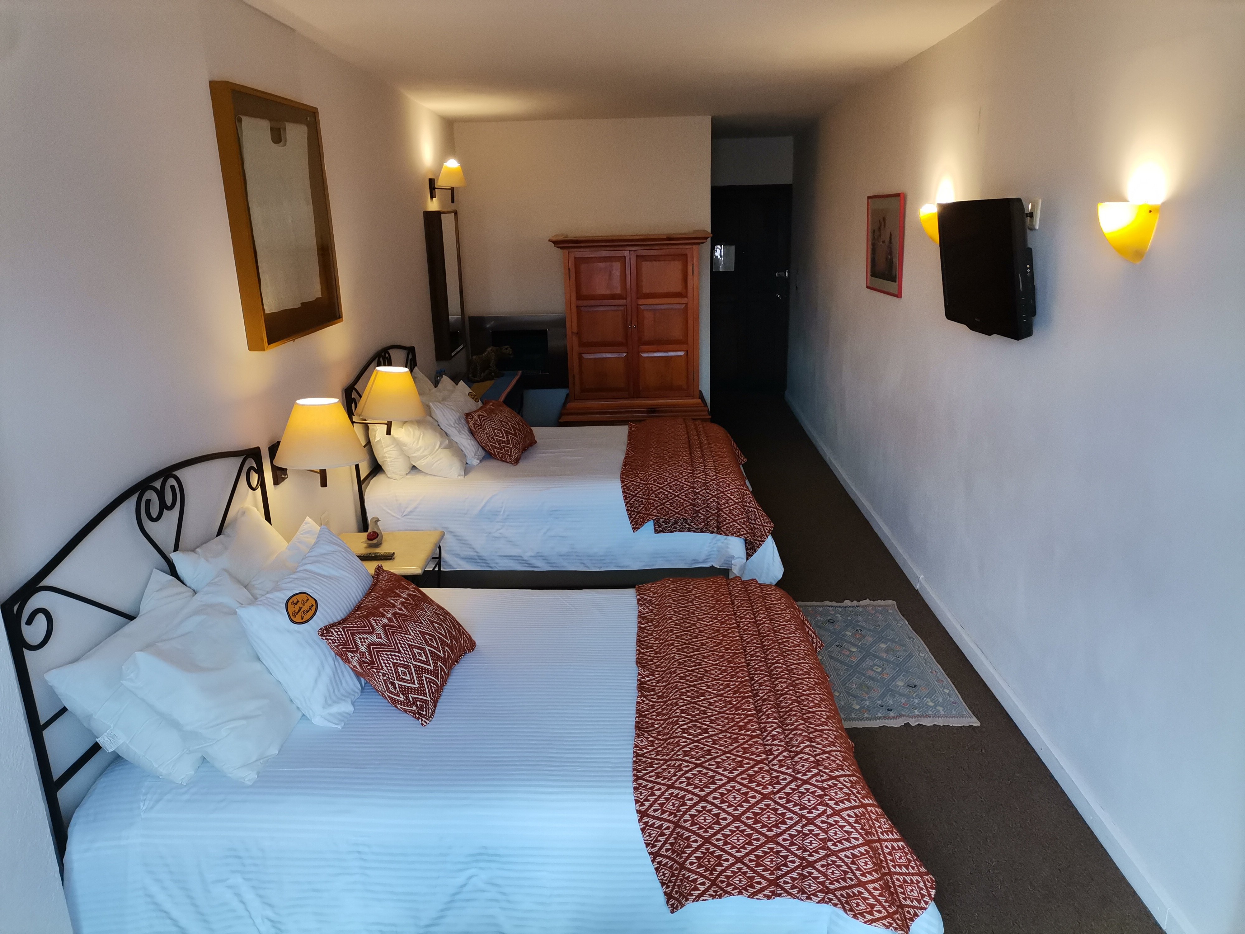 Déjate consentir por nuestras habitaciones con dos camas, con balcones privados donde podrás disfruta de la vista del pueblo mágico de San Cristóbal de Las Casas, bellamente decoradas con colchas, tapetes y cojines, elaborados por las mujeres artesanas de los Altos de Chiapas.